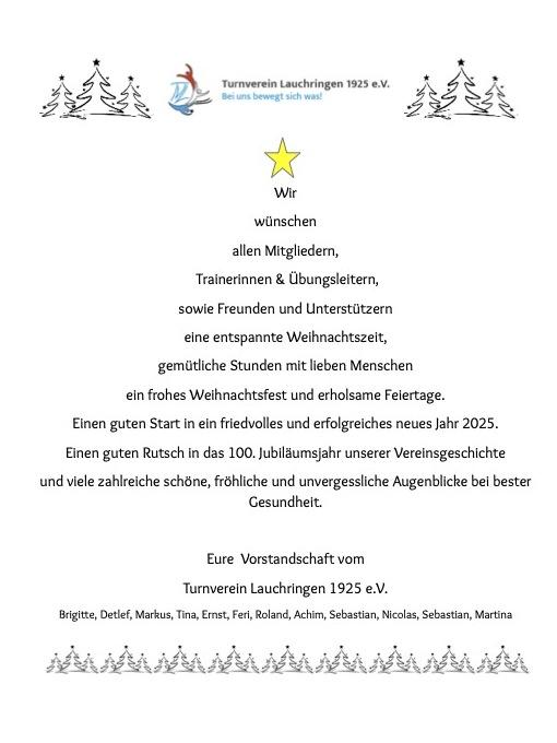 Genießt die Weihnachtsfeiertage! Die Ski- & Snowboardabteilung des TVL wünscht euch ein frohes Fest!