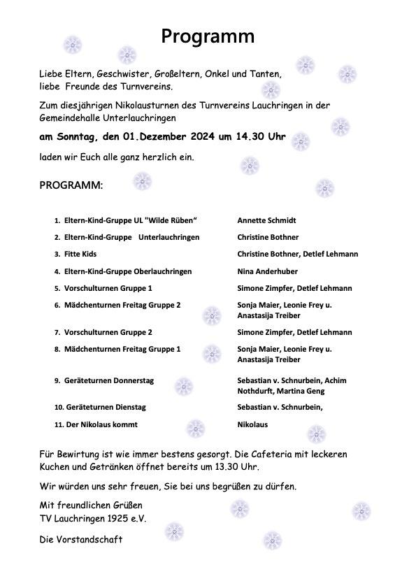 Zum ersten Advent lud der Turnverein Lauchringen zu zum traditionellen Nikolausturnen seiner Turnabteilungen in die festlich dekorierte Gemeindehalle Unterlauchringen ein.