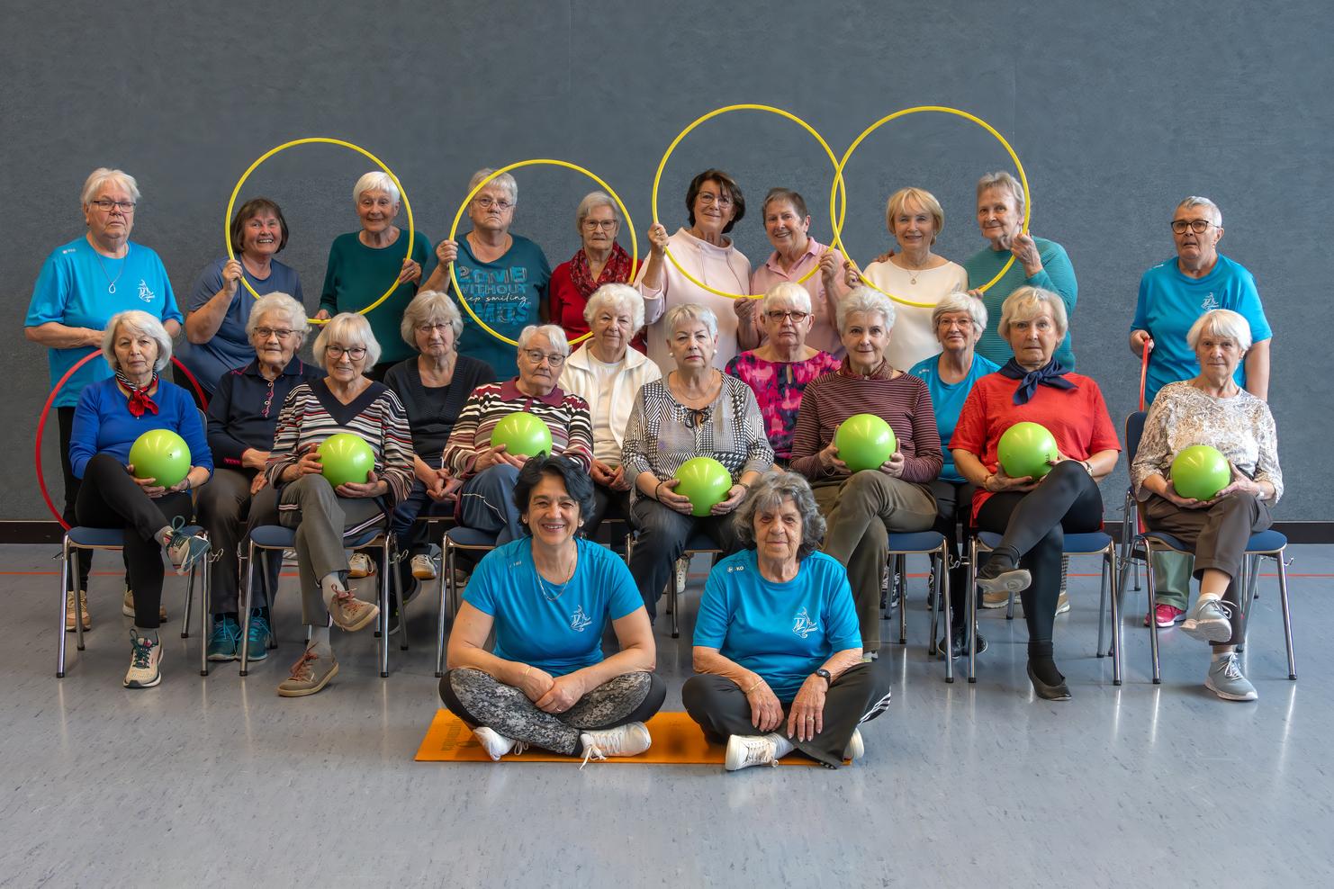 Mit Bällen, Reifen oder Keulen wir Omas eine Stunde verweilen.