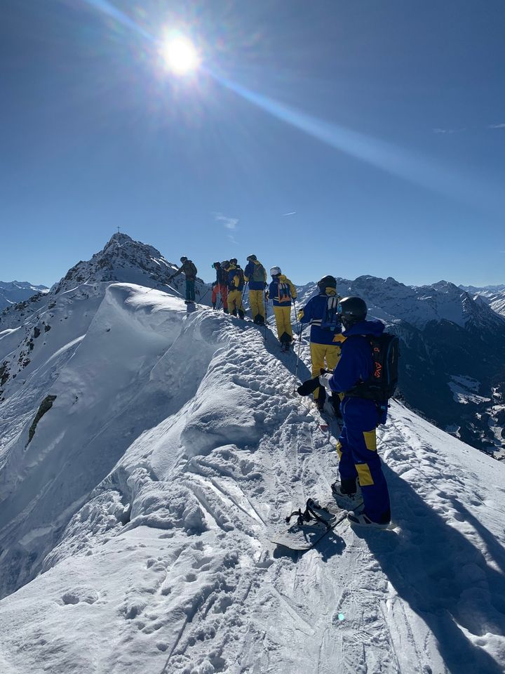 Wir durften von unserem Guide Matthias wieder einen wahnsinnig tollen Tag neben der Piste verbringen. Er führte uns durchs Gelände, schulte uns intensiv im Umgang mit Lawinenausrüstung und sensibilisierte uns für Gefahren, Einflüsse und Organisation. Wir konnten unser Wissen und unsere Fähigkeiten selber austesten und wurden parallel von Matthias gecoacht. Jeder hatte die Möglichkeit die Gruppe anzuführen und Verantwortung übernehmen. Wo macht es Sinn runterzufahren? Wo befinden sich sichere Haltepunkte und warum sind diese sicher? Wie interpretiere ich den Lawinenlagebericht? Das ist ein kleiner Teil der Fragen und Unklarheiten, die geschult wurden.