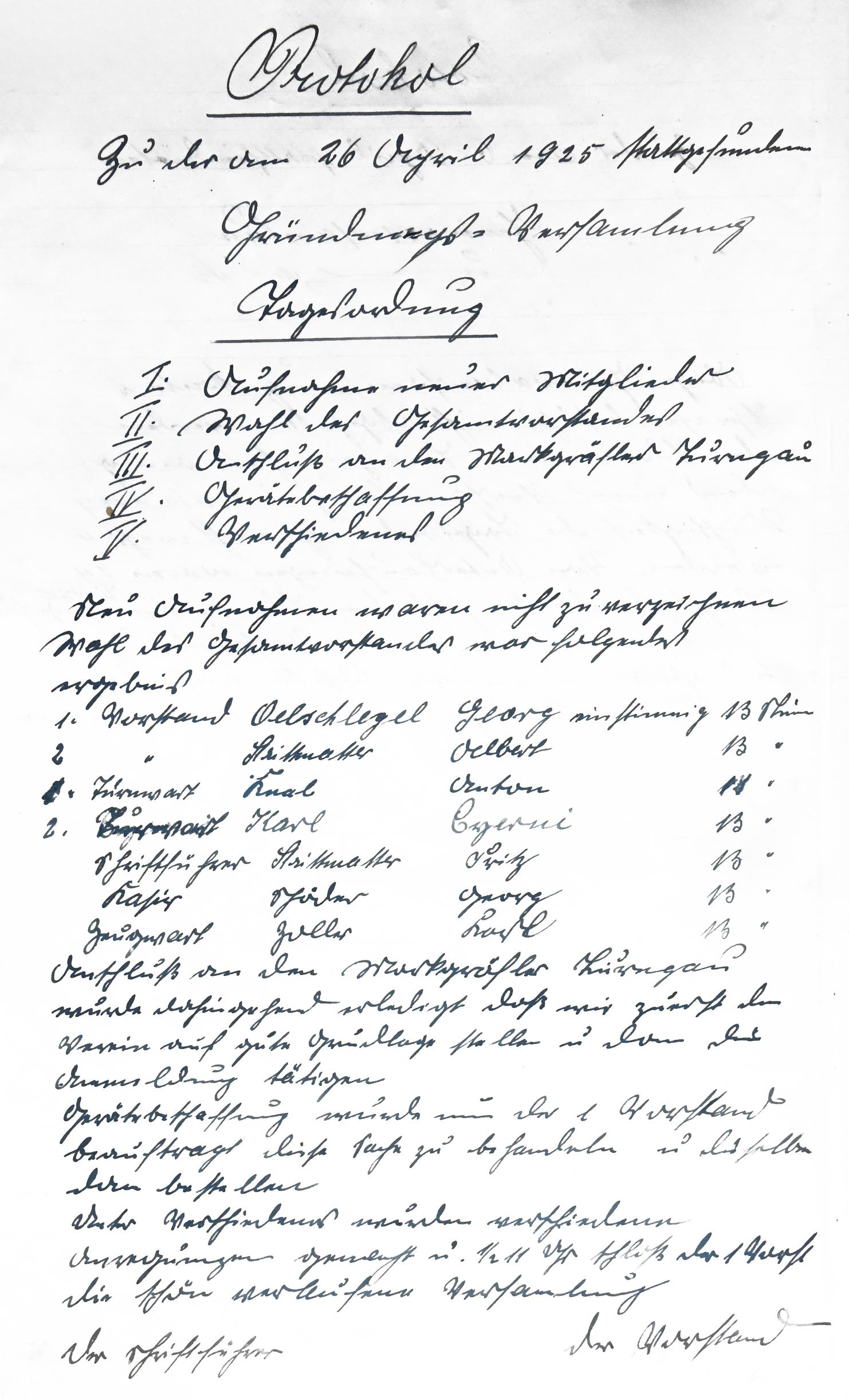 Von den 29 Männern der ersten Stunde wurde der erste Vorstand gewählt.